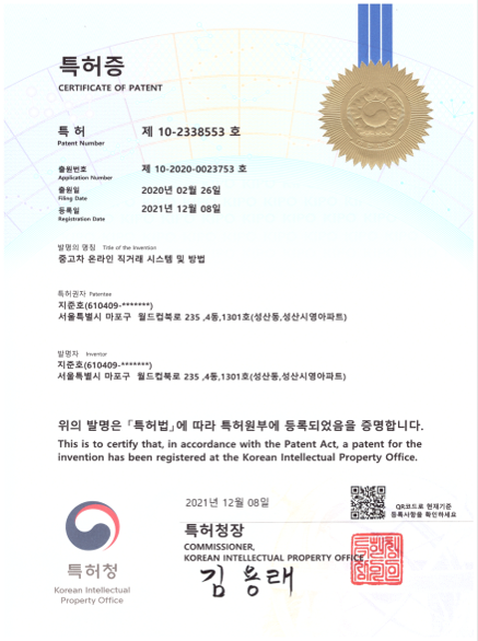 온라인 직거래 시스템 특허 출원 및 등록 결정